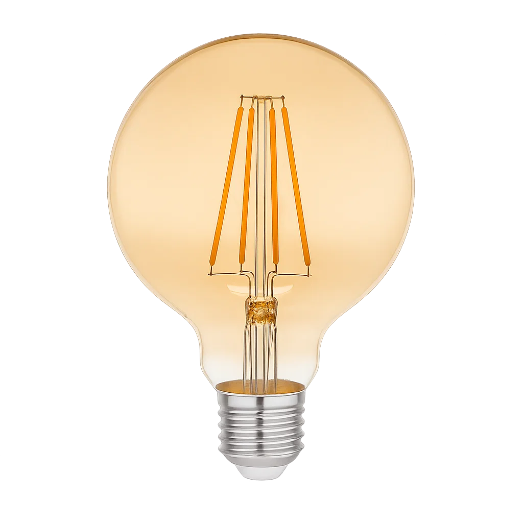 • Estilo Vintage: Con su forma esférica y filamento visible, esta ampolleta evoca la nostalgia de las clásicas bombillas Edison, agregando un toque de elegancia y calidez a cualquier ambiente.