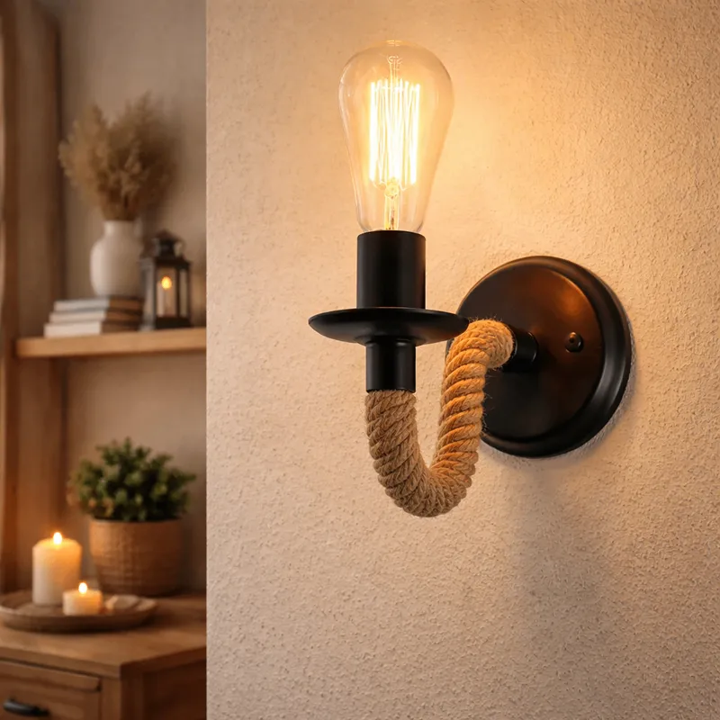 El Aplique Porta Ampolleta E27 es una excelente opción para quienes buscan una iluminación funcional con un toque decorativo y natural. Su diseño combina cáñamo y aluminio, logrando un estilo moderno, rústico e industrial que se adapta perfectamente a distintos ambientes del hogar o espacios comerciales.