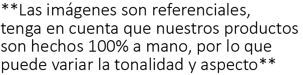 • Hecho a Mano: Cada pieza es cuidadosamente elaborada a mano, lo que le confiere un carácter único y un acabado artesanal incomparable.