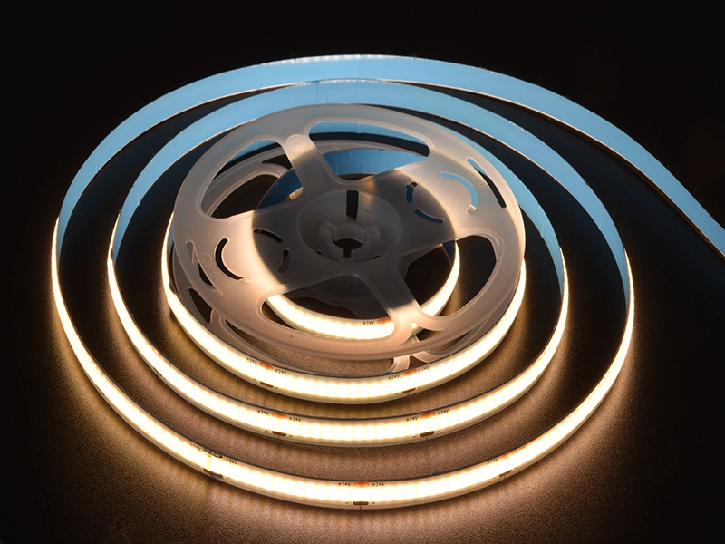 Descubre la Cinta LED COB 12V 320 LEDs 9.5W/m, diseñada para ofrecer una iluminación continua, uniforme y de alto rendimiento. Ideal para proyectos de decoración e iluminación en interiores que requieren elegancia, eficiencia y fiabilidad.