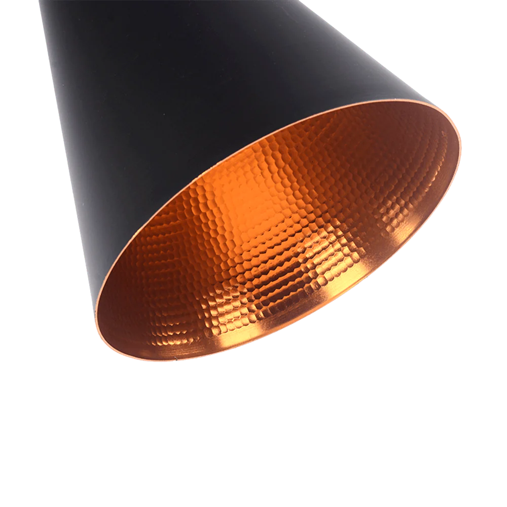 🔹 Campana metálica que dirige la luz hacia abajo para crear un efecto acogedor.