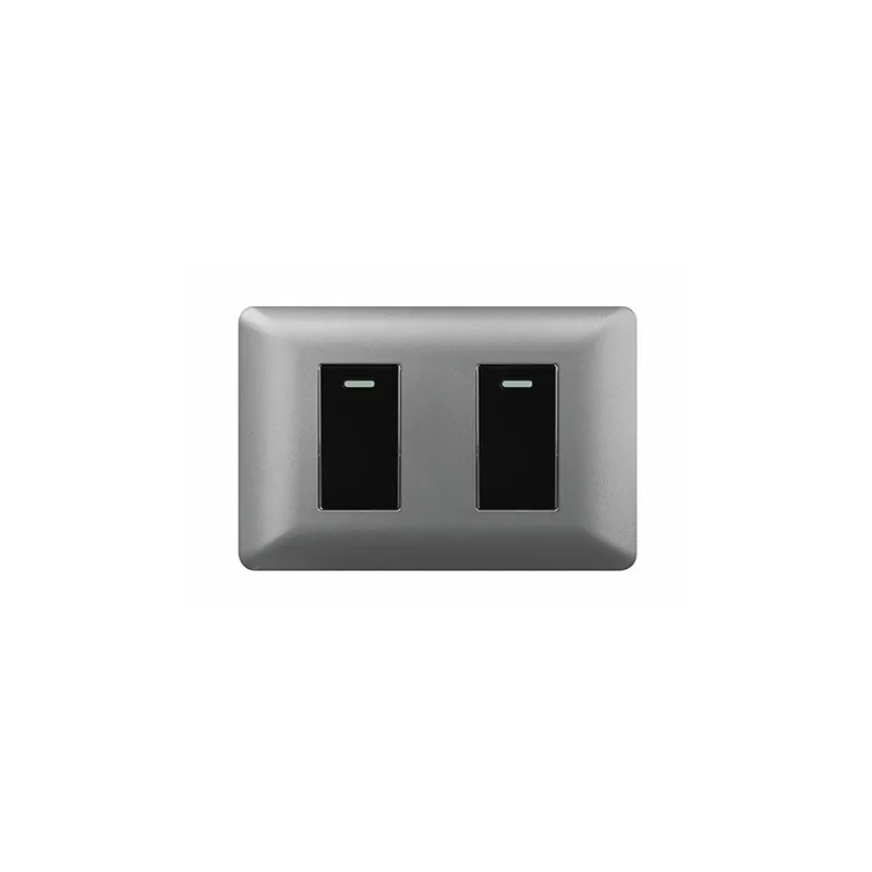 Ideal para quienes buscan un interruptor doble confiable, resistente y con diseño sofisticado, perfecto para controlar dos circuitos de iluminación manteniendo una estética moderna en gris antracita con módulo negro dentro de la línea Nova.
